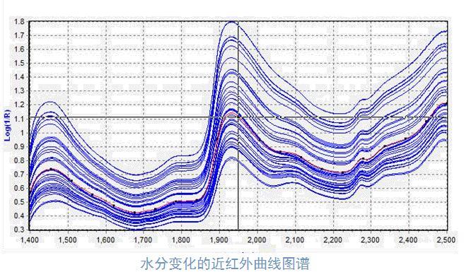 特定波長能量被吸收的多少,取決于近紅外能量束所遇到的水分子多少和在該特定波長的吸收強(qiáng)度。能量束所遇到的水分子數(shù)量是與所測物質(zhì)中水分成正比。同時(shí)因?yàn)樗謨x是反射比的形式,測量的光束亦被受測物質(zhì)的反射和吸收特性所影響。